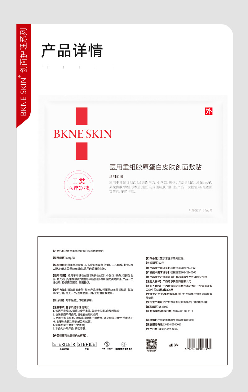 第二類医療機器ブランドマスク、再構築型3型ヒト化コラーゲン皮膚創傷被覆材、医療グレード冷湿布