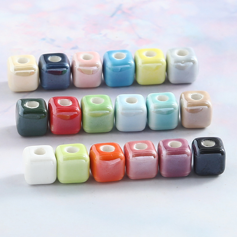 メッキ8mmセラミック正方形ビーズDIY手作りビーズブレスレットネックレス材料カラー正方形ビーズアクセサリーアクセサリー