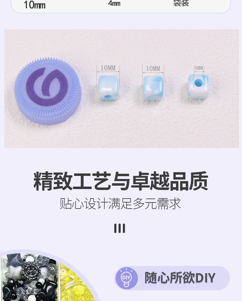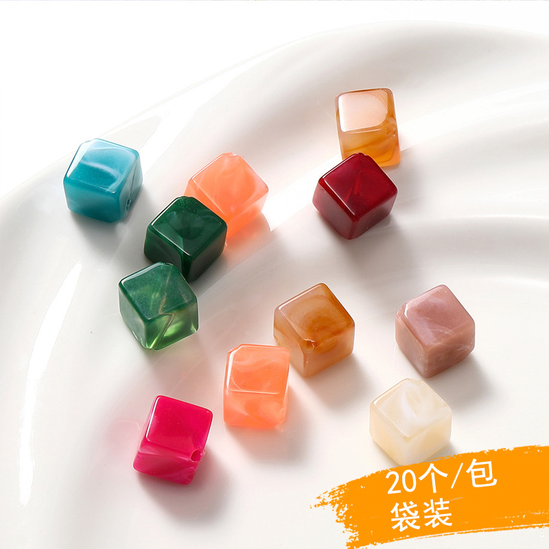 10mmアクリル正方形カラー大穴ビーズ粗穴diyアクセサリーミックスビーズビーズ手作り材料