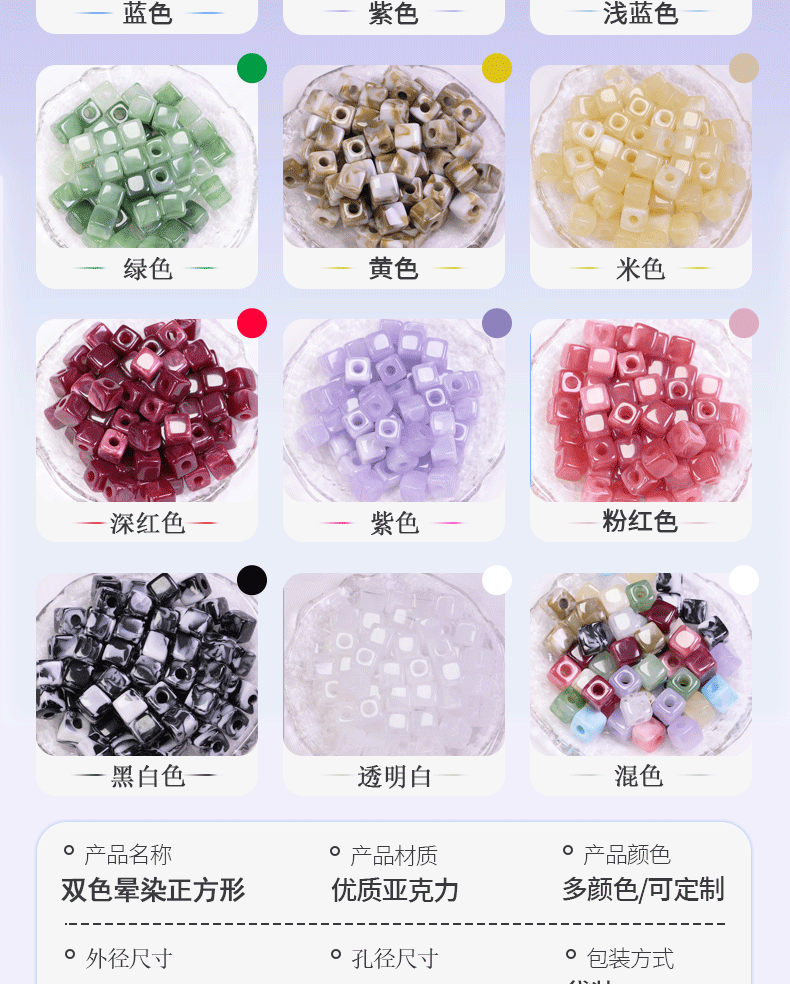 アクリル2色ぼかし正方形大穴ビーズ粗穴カラービーズdiyアクセサリーアクセサリー散珠材料