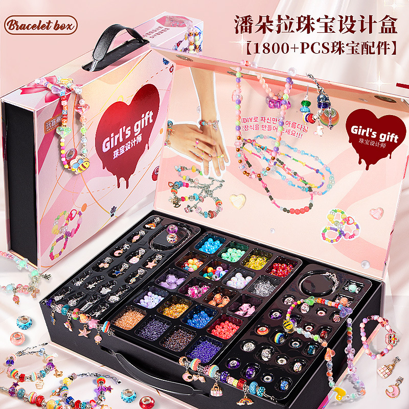 儿童串珠diy手工制作手链项链首饰穿珠女孩宝藏礼盒套装生日礼物