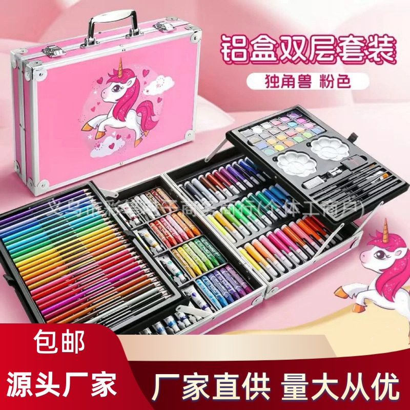145铝盒双层画笔套装儿童美术绘画礼品水彩笔套装工厂批发