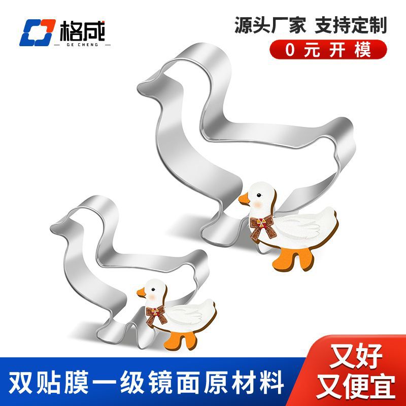 热销现货 傻鹅不锈钢饼干模具两件套 小白鹅卡通立体曲奇切模工具