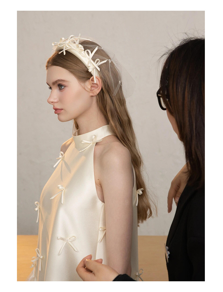 法式晨袍女新娘高级感缎面轻婚纱小众轻奢出门纱订婚白色抹胸礼服