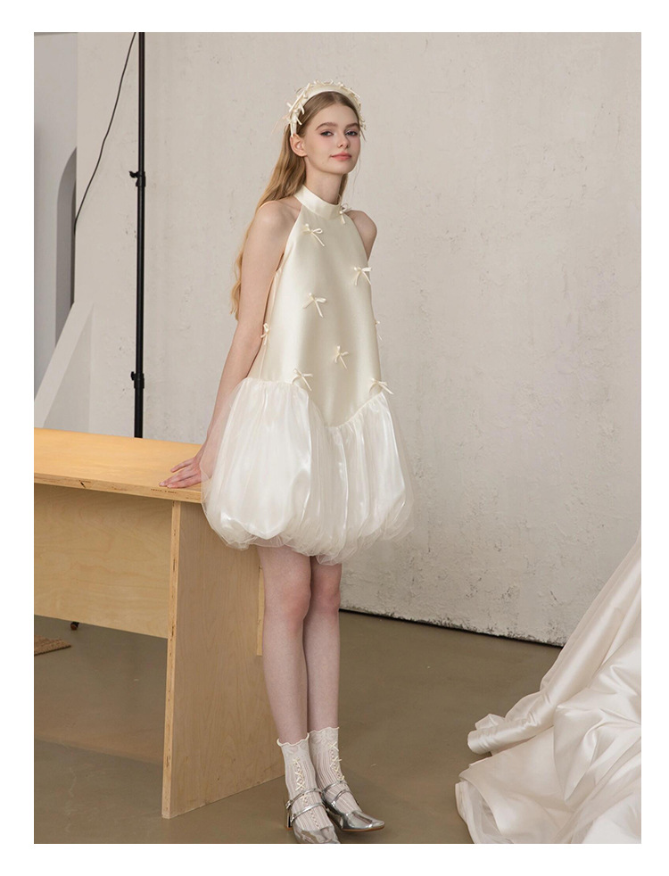 ホルターネックの軽いウェディングドレス、小柄な方向け、2025年冬新作、花嫁用ハイウエスト、登録・結婚証明書撮影用、旅行写真用、モーニングローブ