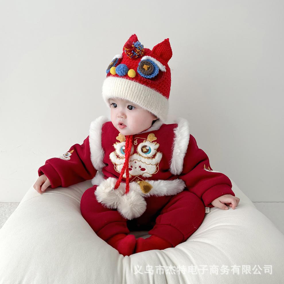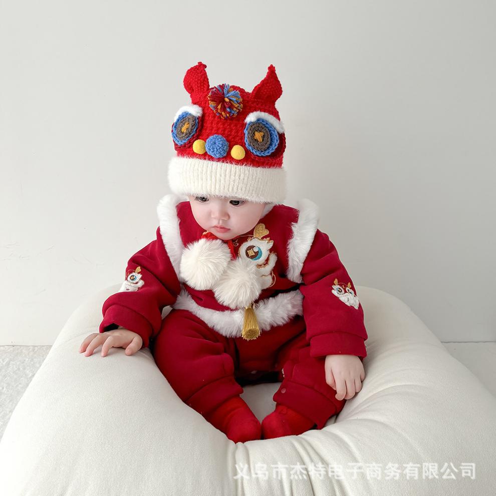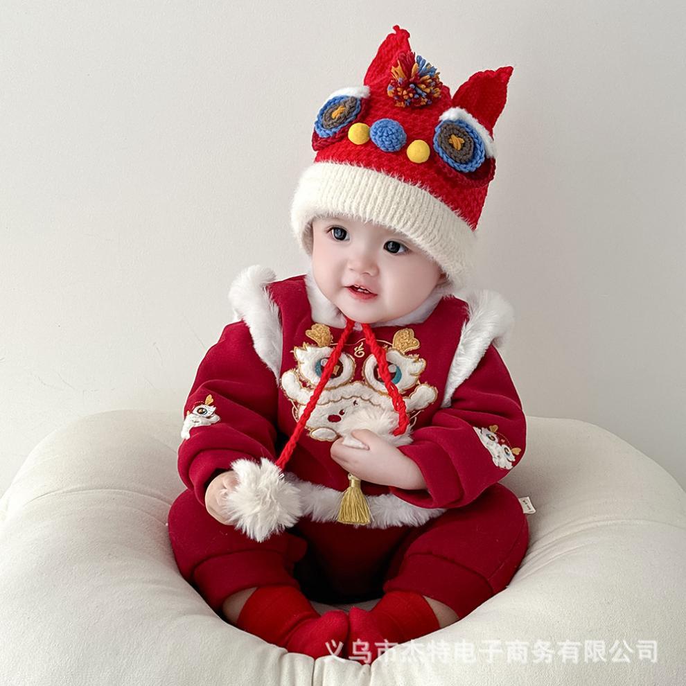 国民的トレンドベビーライオンウェイクハット秋冬暖かい厚みのあるウールの帽子男性と女性の赤ちゃん用耳保護帽子タイガーヘッドハット
