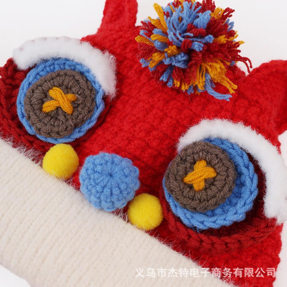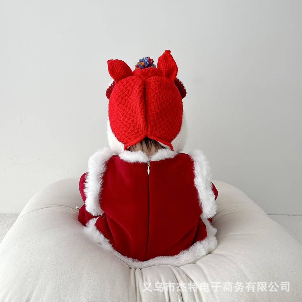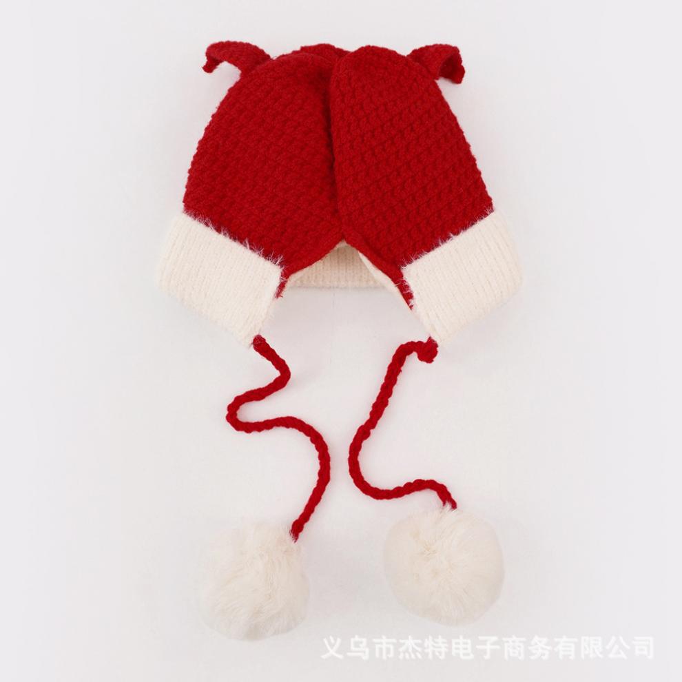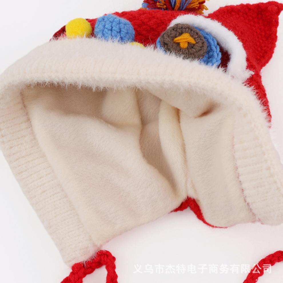 民族風毛糸帽の子供2024新型秋冬耳保護ニット帽の頭周り保温冷帽毛玉冬帽