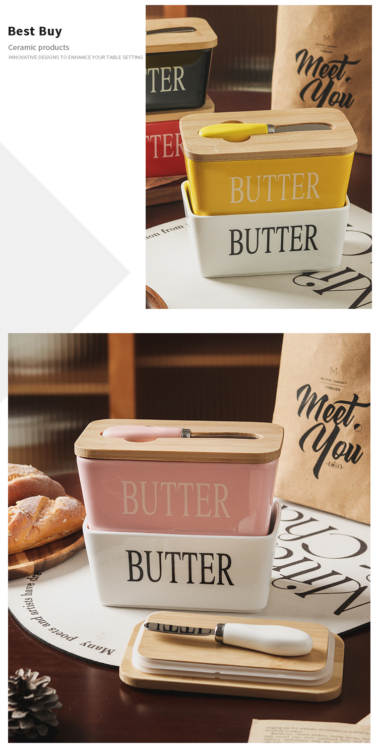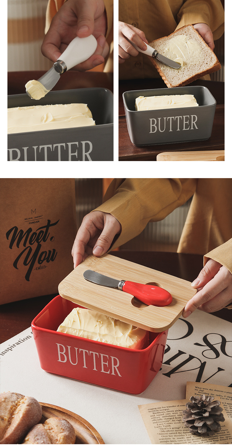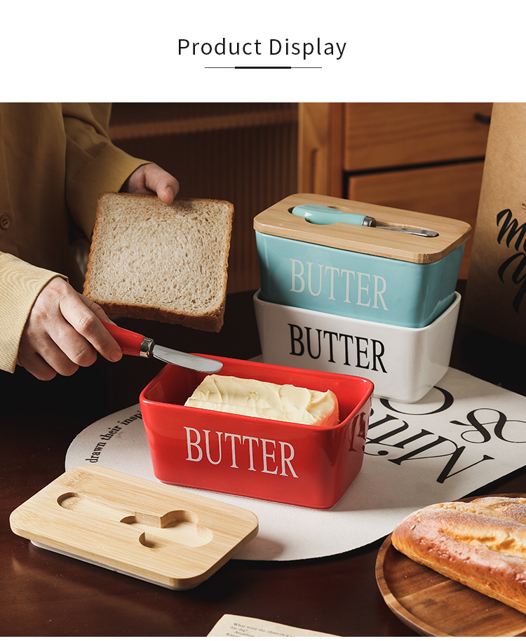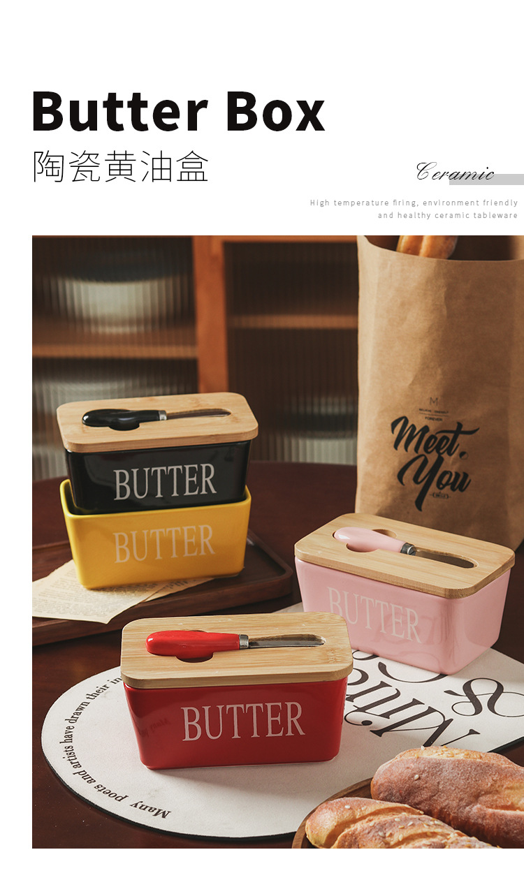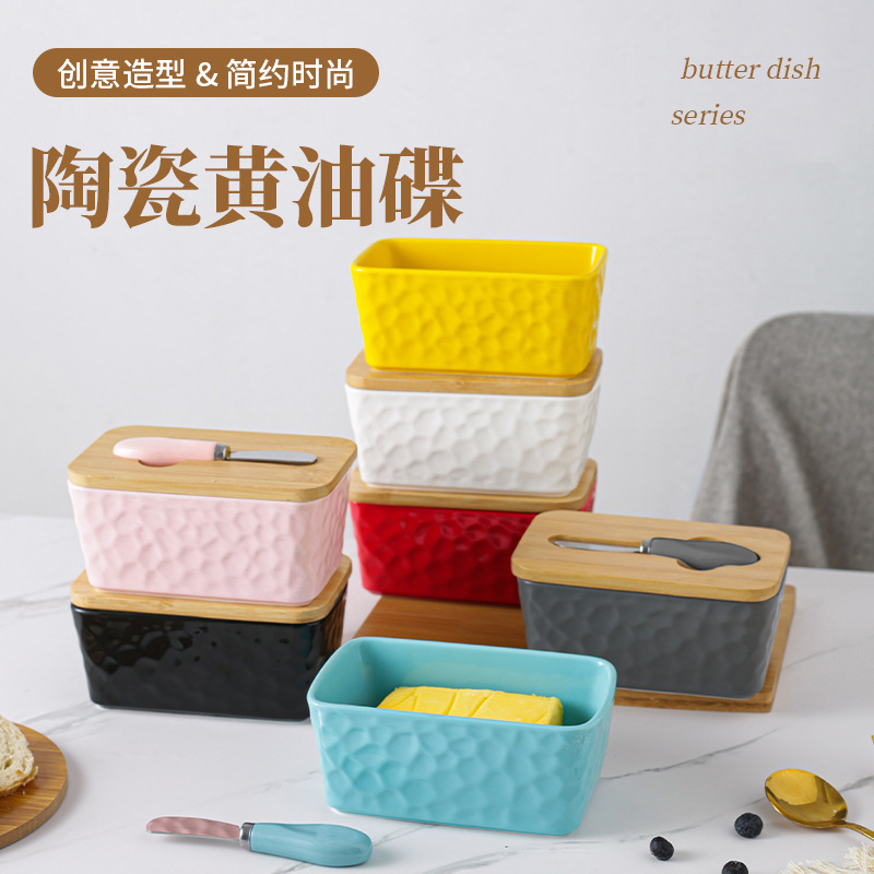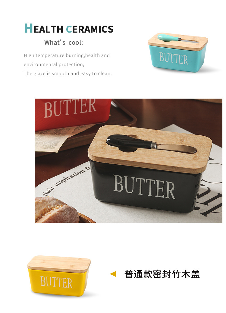 セラミック長方形バターボックスバターボックスクロスボーダー代理店西洋竹蓋マッチングスパチュラ密封保管卸売