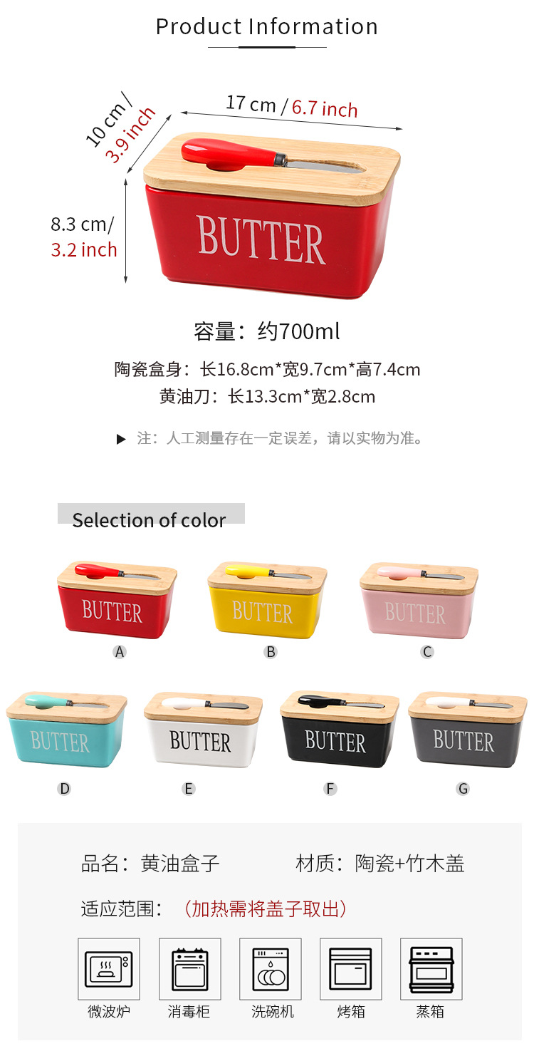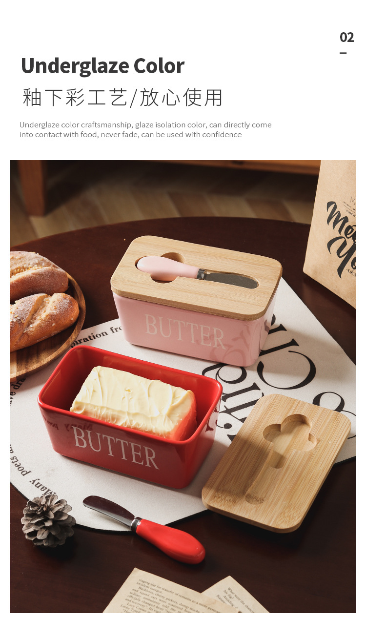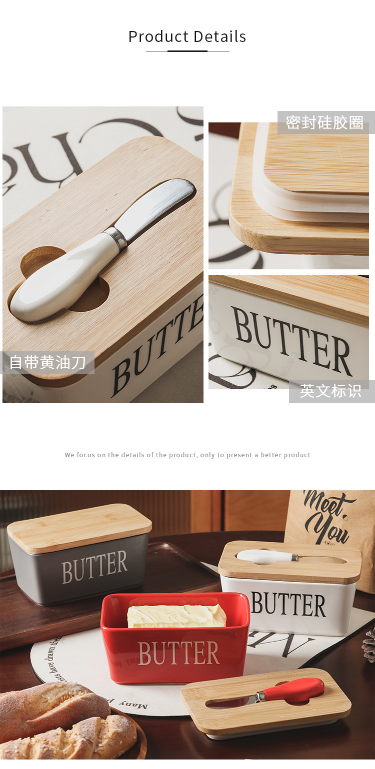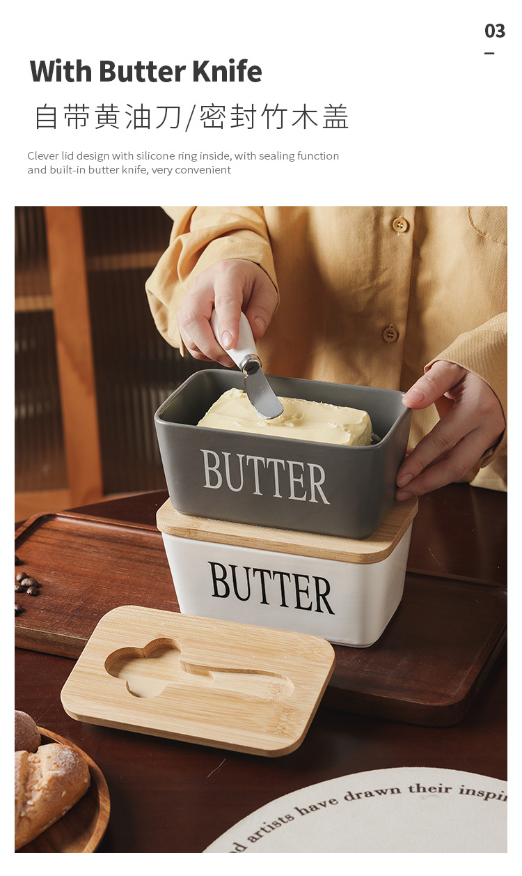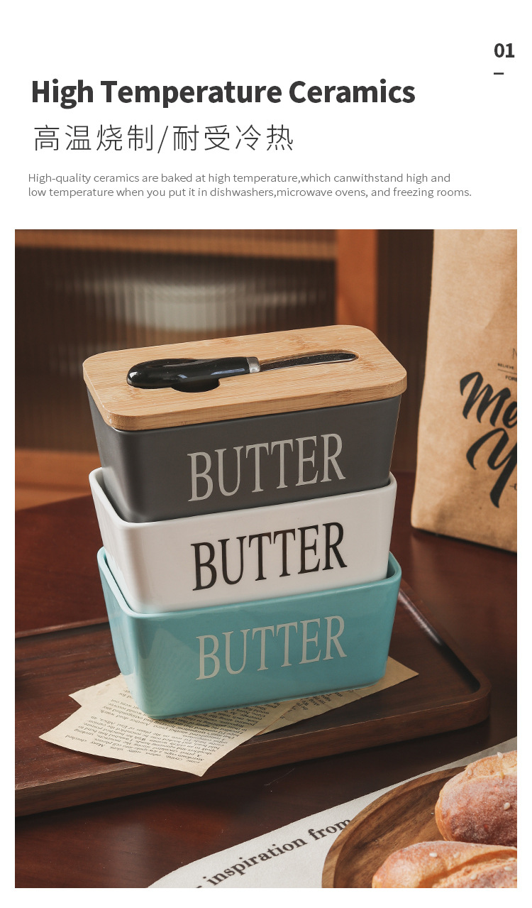 セラミック長方形バターボックスバターボックスクロスボーダー代理店西洋竹蓋マッチングスパチュラ密封保管卸売