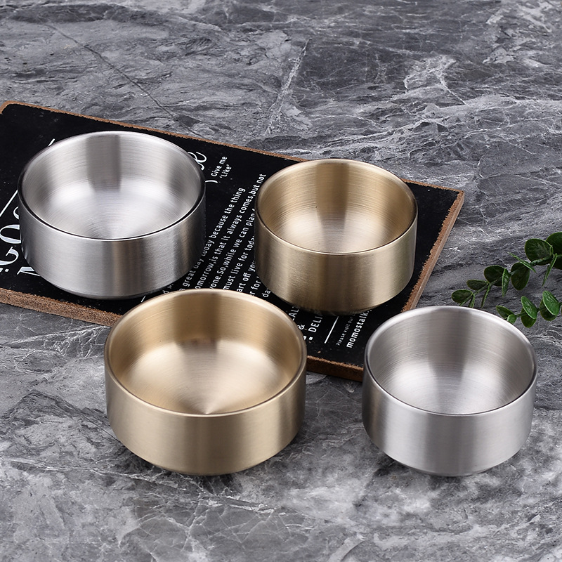 韩式304不锈钢米饭碗碗筷商用双层防烫汤碗韩国金色酱料泡菜
