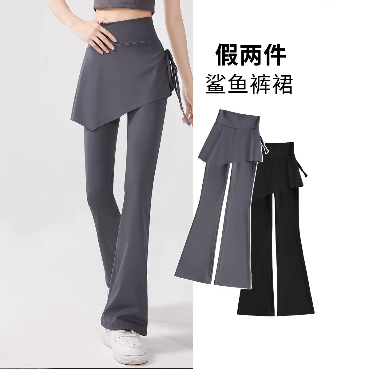 瑜伽裤女假两件裤裙高腰提臀紧身防走光喇叭裤普拉提运动健身裤
