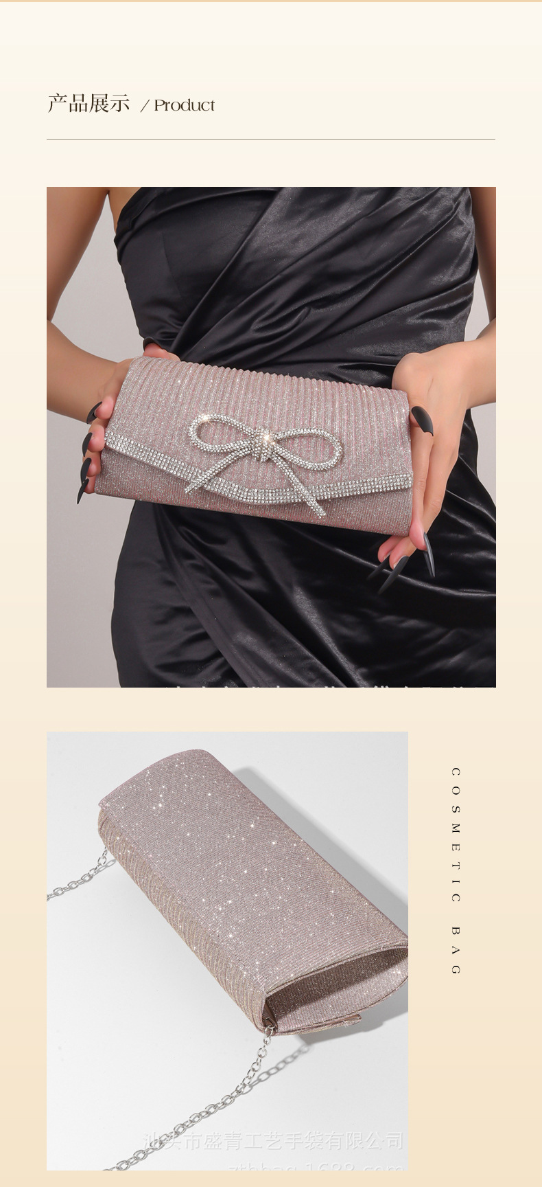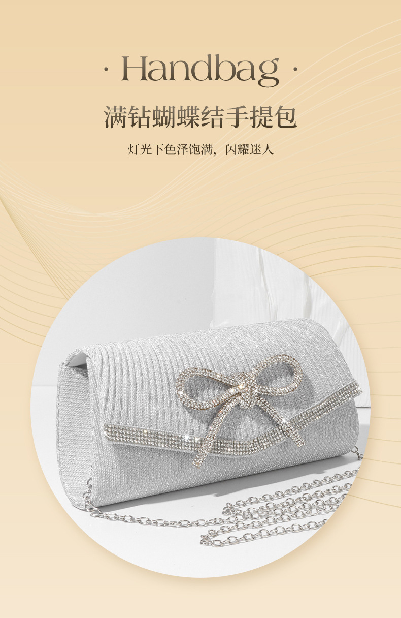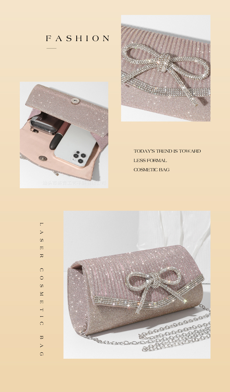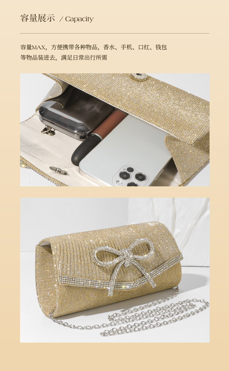 クロスボーダー在庫あり 欧米風ファッション新作イブニングバッグ ダイヤモンド付きリボン グリッタークラッチバッグ チェーンショルダーバッグ