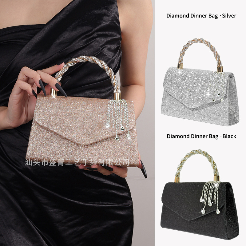 工場在庫あり、新しいラインストーン装飾のドレスバッグ、ファッショナブルなパーティーや宴会バッグ、KTVバッグ、軽くて豪華なポータブルイブニングバッグ