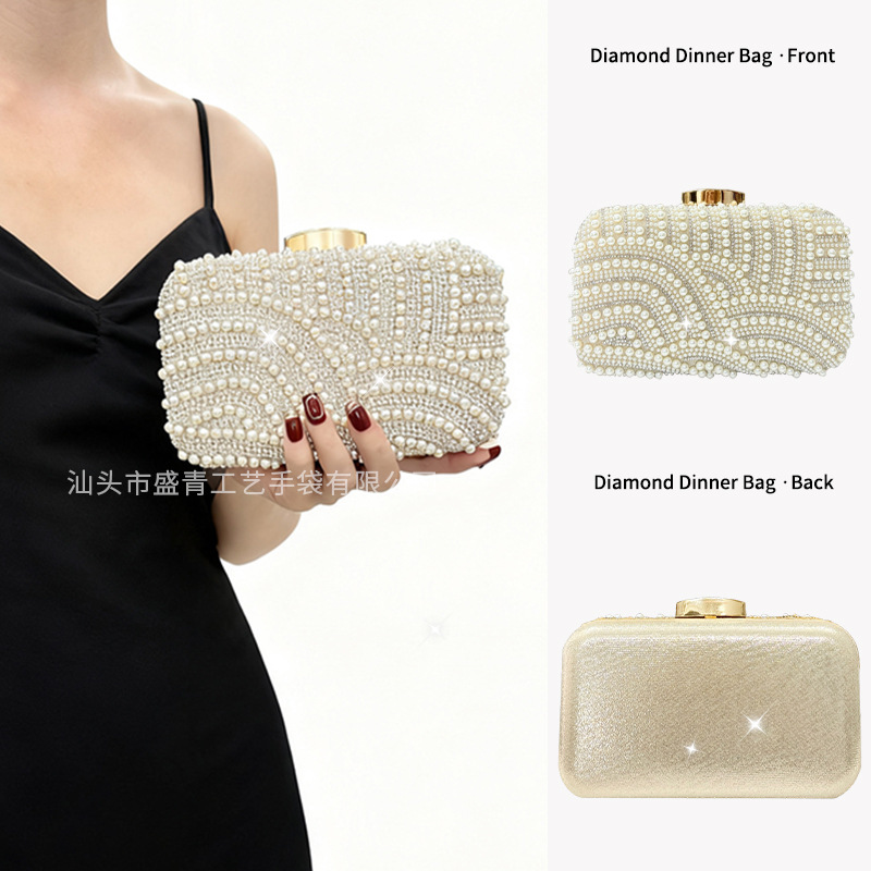 跨境新款手工珍珠旗袍包婚礼礼服手拿包潮流气质优雅名媛精美女包