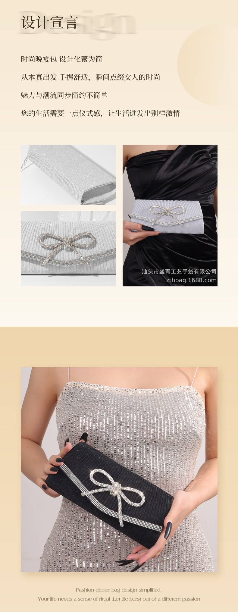 国境を越えた電気商2024の新しい晩餐会は欧米の軽贅沢なリボンのハンドバッグが輝いている花嫁のバッグを包んだ