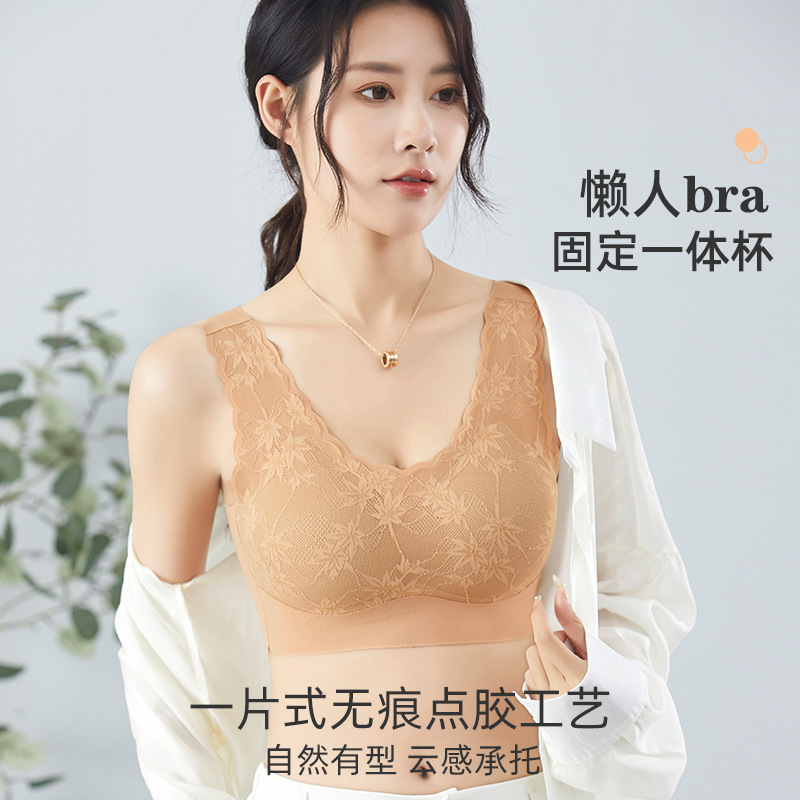 大きな胸と小さな束を持つ女性のためのシームレスな下着 大きな胸の女性のためのシームレスな下着、小さなコルセットベスト、美しいバックブラ、女性用の胸パッドボトミングシャツなしの統合ラテックスパッチ