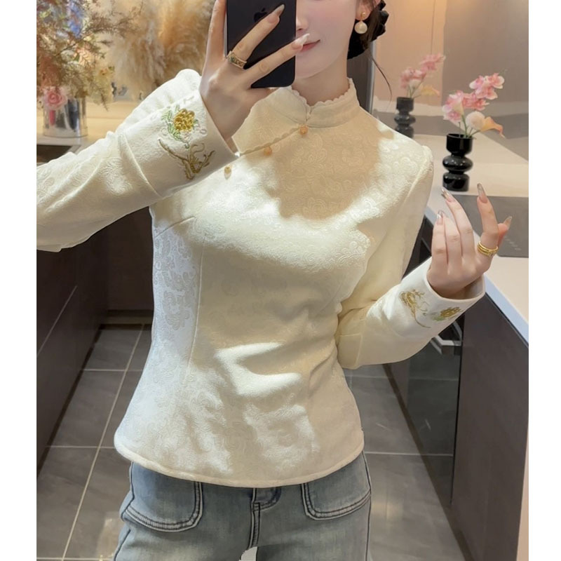 【福蝶】2025秋冬新款新中式中国风刺绣提花加绒加厚立领长袖上衣