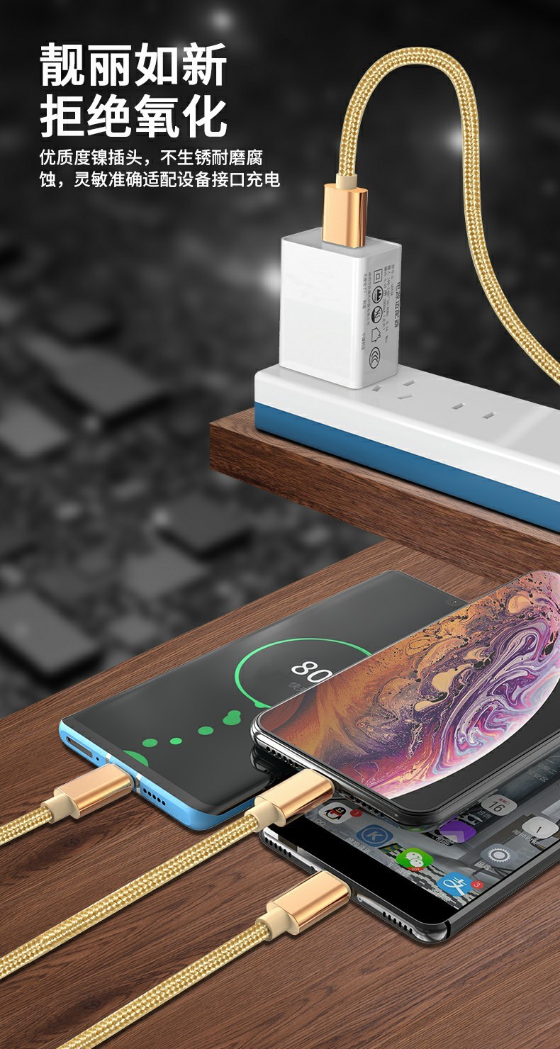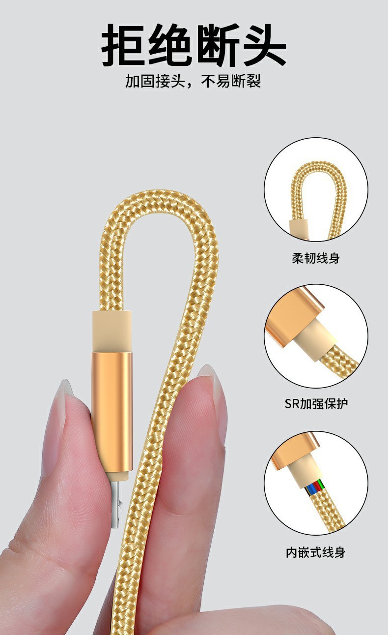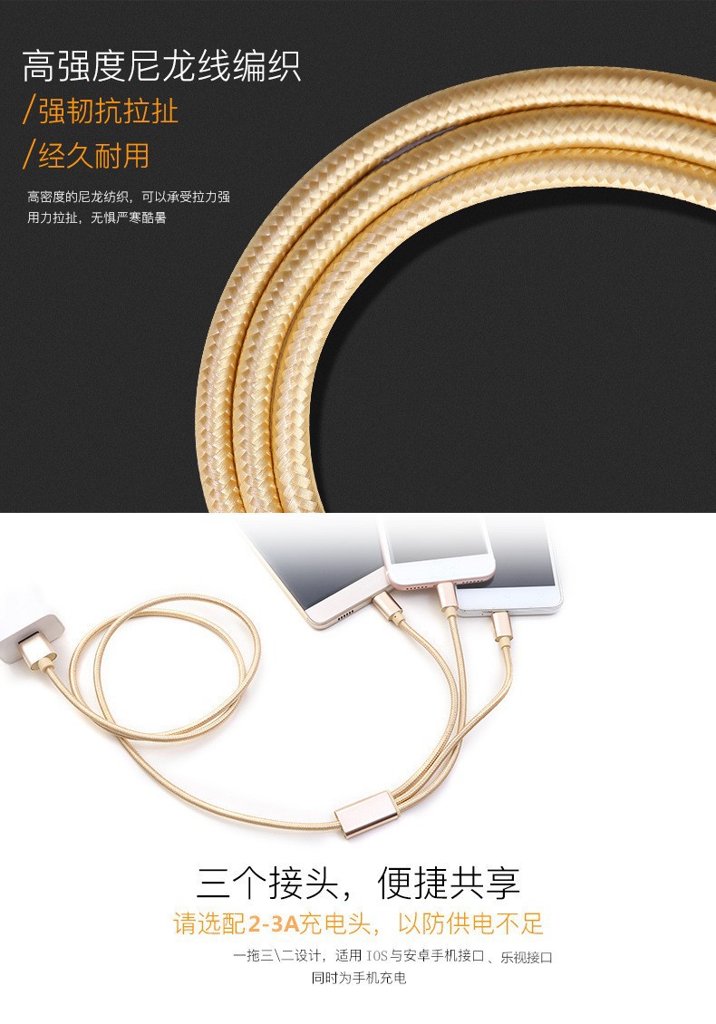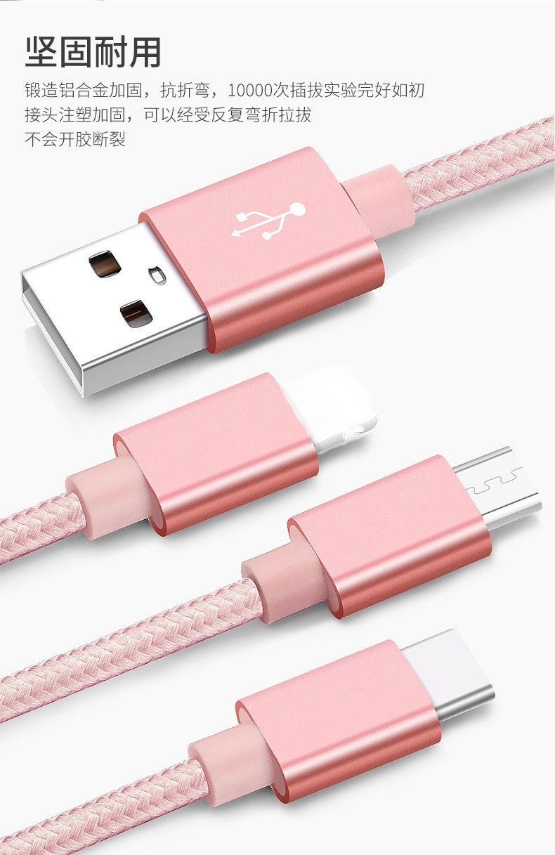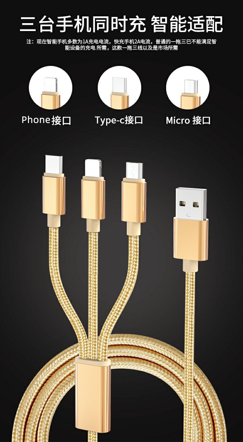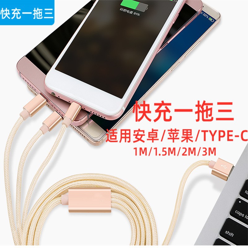 延長データケーブル 1m1.5m2m3m スリーインワン携帯電話充電ケーブル 1 対 3 データケーブル編組ケーブル type-c