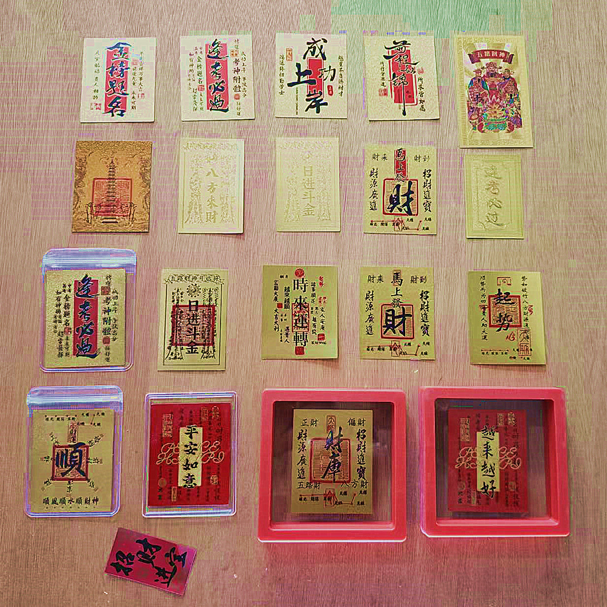 龍湖山財宝携帯電話ステッカー、五方財神金保護錠、模造金箔身札、上陸袋、富のステッカー