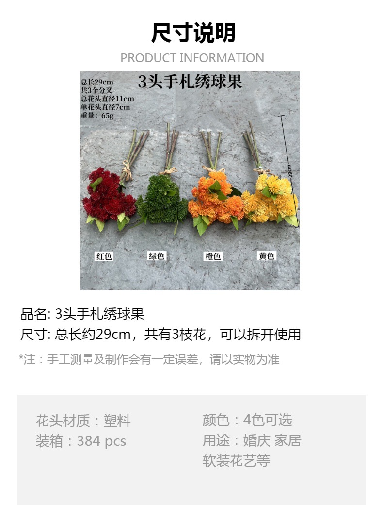 2、如果部分产品为植毛覆毛的花叶和枝干,难免掉毛,非质量问题,不会影响产品效果。