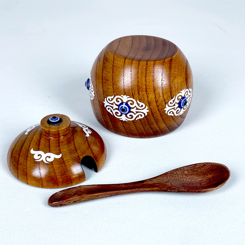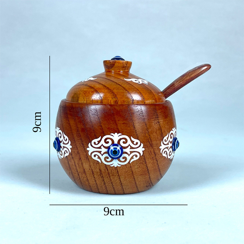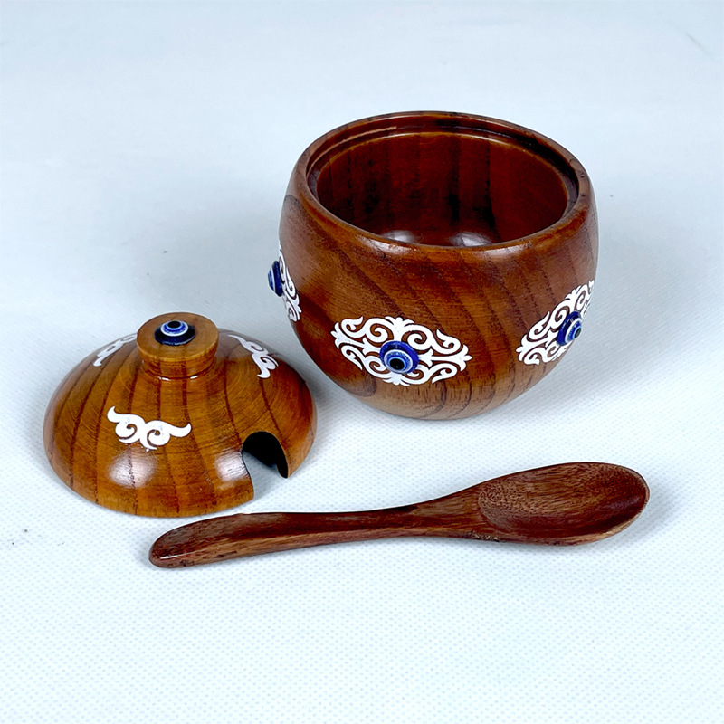 工芸品、手作りの特徴的な手作りの家庭用蓋付き模様茶道ラウンド木製塩箱クリエイティブ調味料瓶