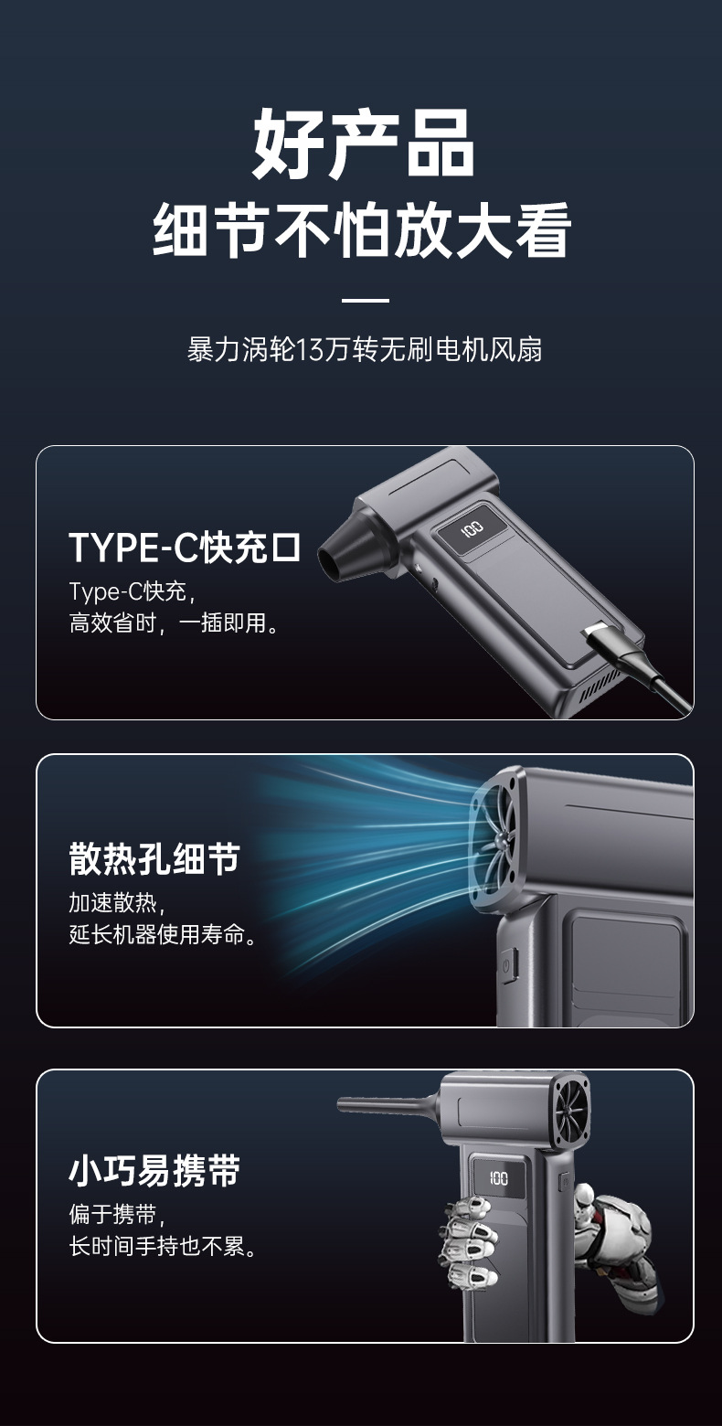 新製品工場直販高速送風暴力ファンターボブラシレスモータークロスボーダーホット製品家庭用ポータブル屋外