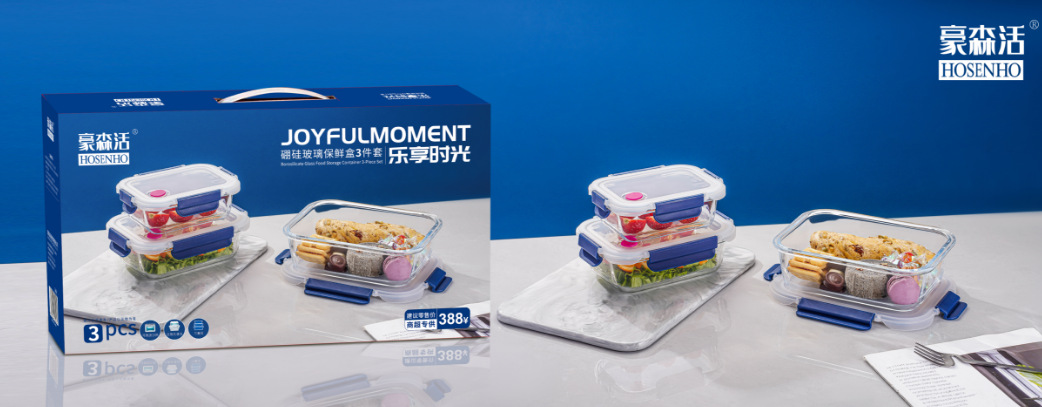 Haosenhuo エンジョイタイム鮮度保持ボウル 3 点セット ガラス鮮度保持ボウルセット 密閉ボウル イベント ギフトセット 卸売