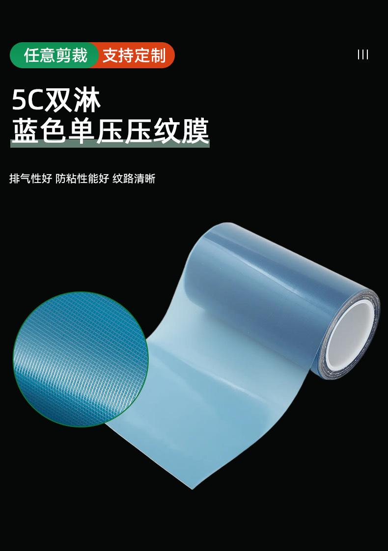 5c両面ラミネート単圧エンボス加工フィルム青色隔離元メーカーゴム製熱伝導シリコン保護フィルム青色剥離フィルム