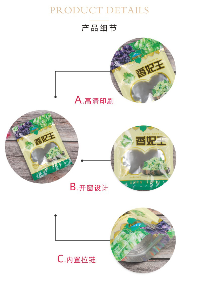 赤いナツメの包装袋は密封してジッパー袋の透明な窓を開けてビニール袋のギフト袋を密封して1斤250グラムを密封します。