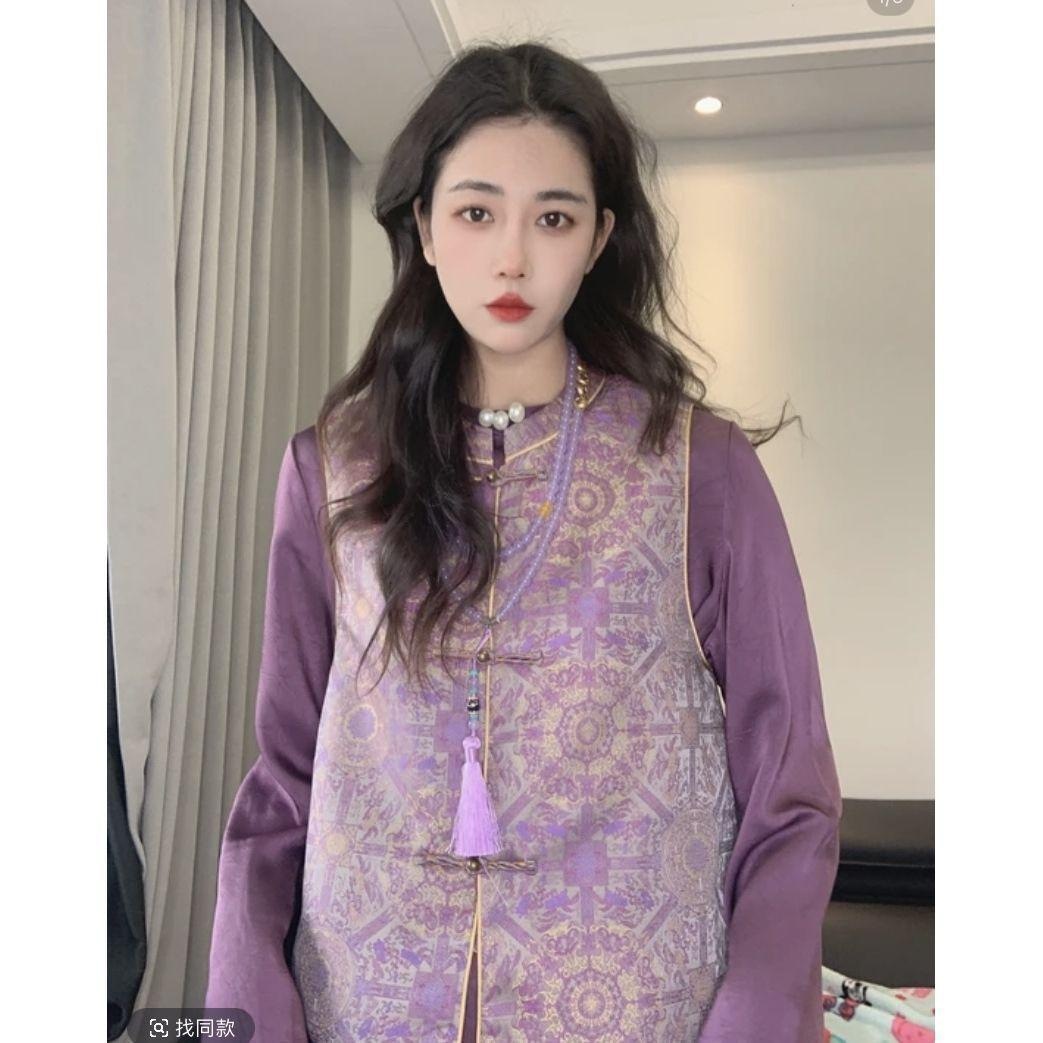 古风新马甲紫色国风秋季气质中马甲重工秋秋女装中式百搭国风国风