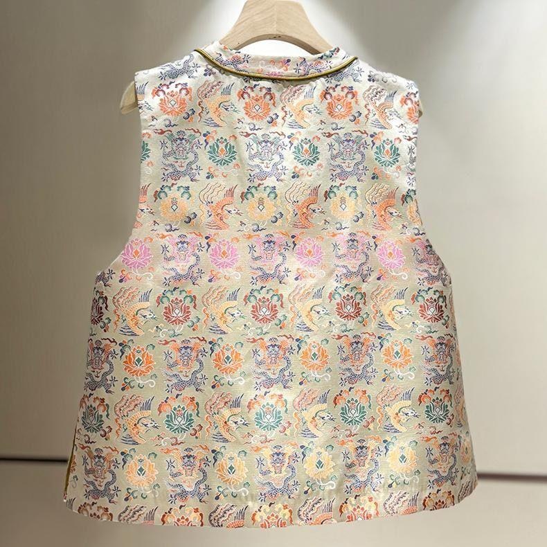 2025年新作中国風錦織ジャカードベスト レディース 秋新作 レトロ改良唐装風民族風ベスト アウター