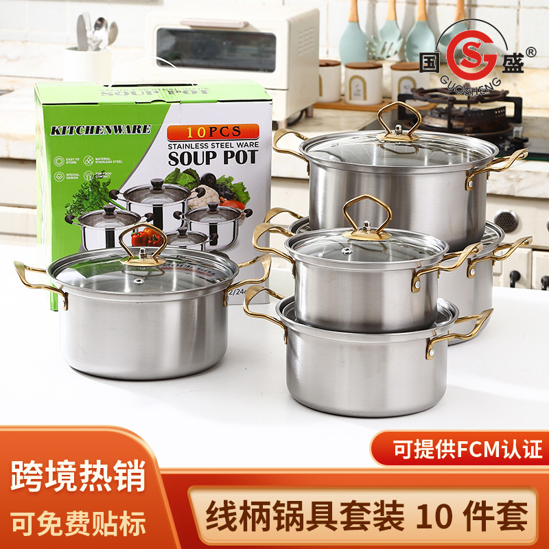 跨境专供10件套料理锅汤锅炊具锅线柄管柄组合礼品厨房锅具套装锅