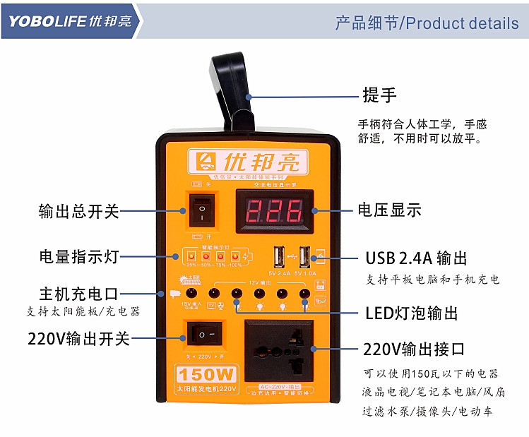 ソーラー発電機システムボードソケット家庭用屋外ライト携帯電話充電飼育多機能蓄電