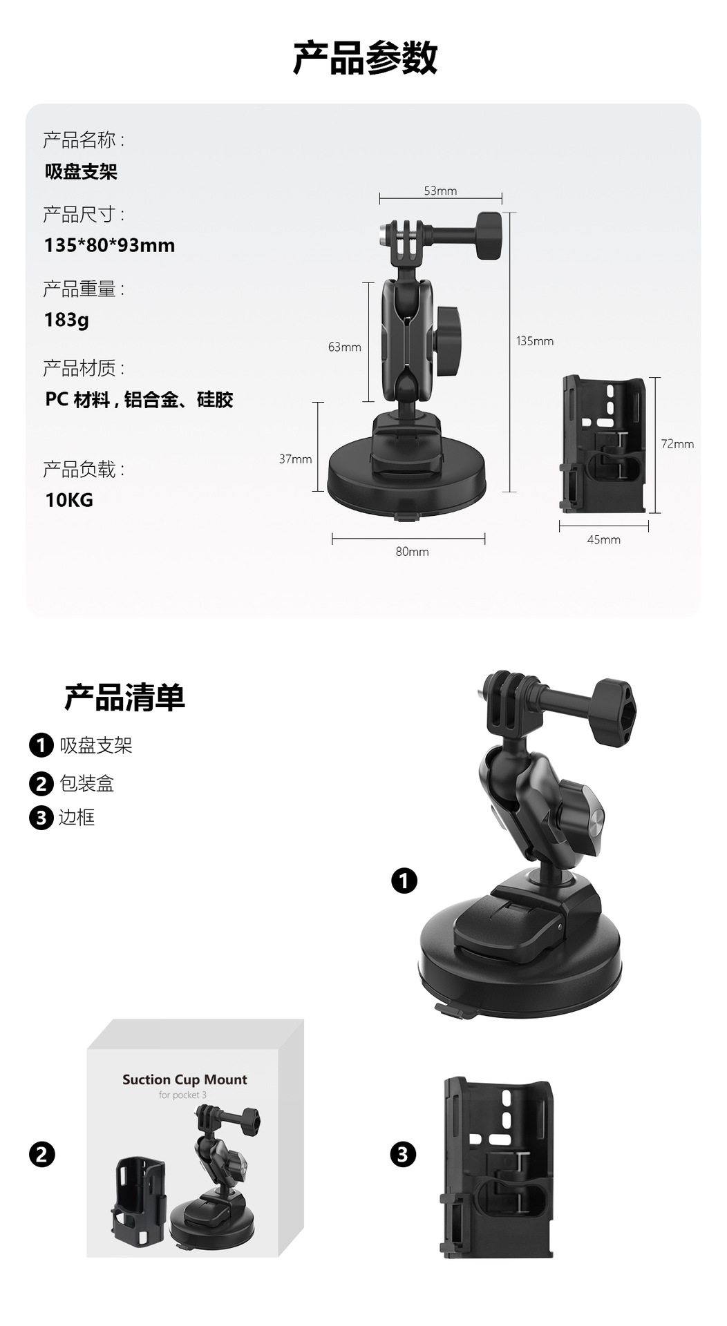 パッケージリスト カメラ吸盤ホルダー;梱包箱;