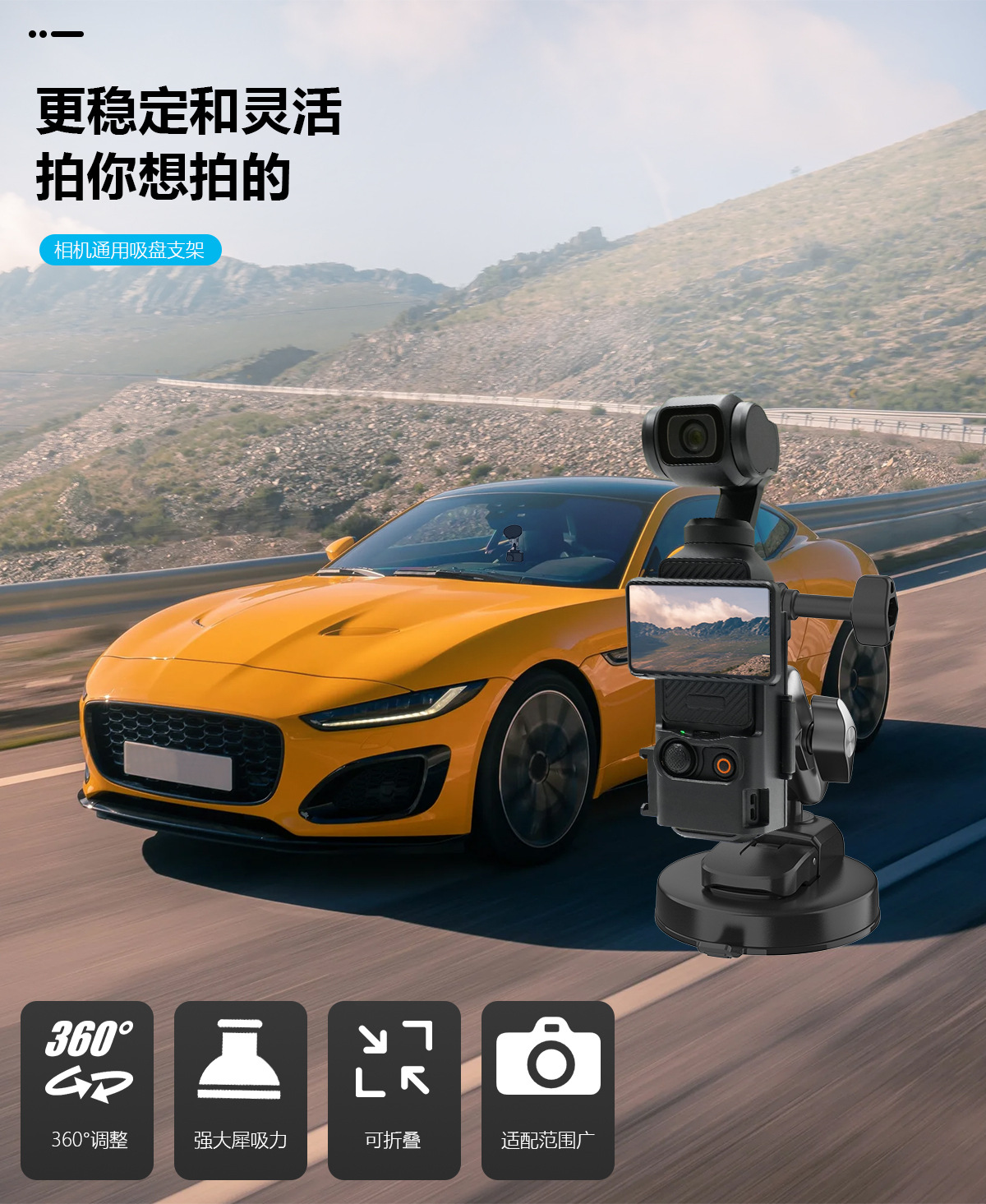 彦林科技大疆pocket3部品スポーツカメラ吸盤スタンド車載万能自動車生放送の視点