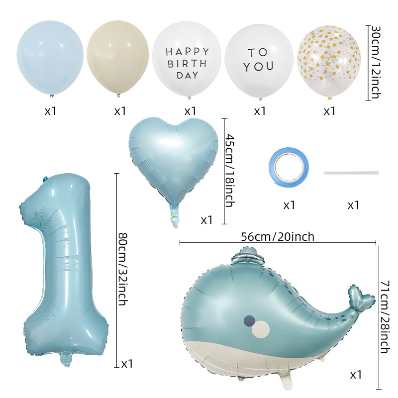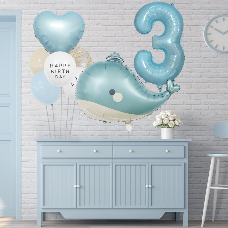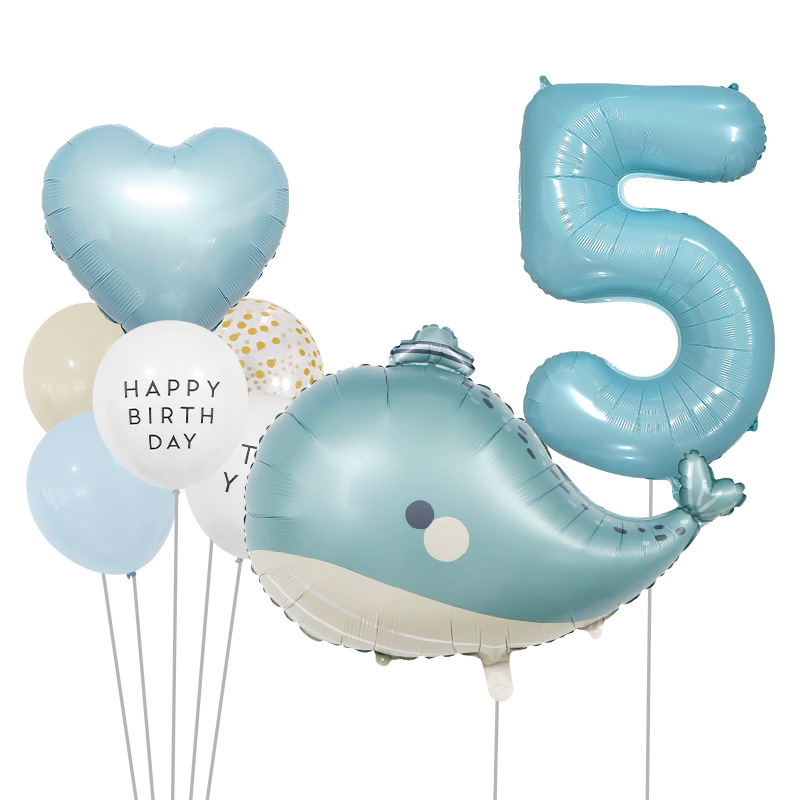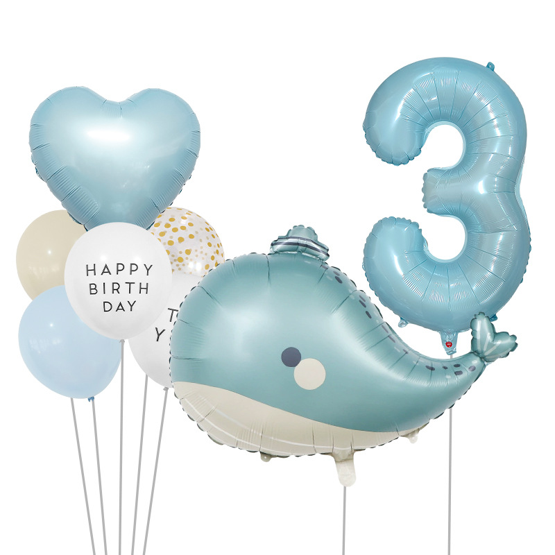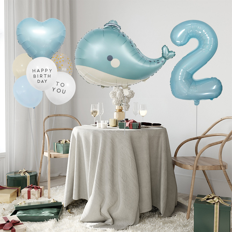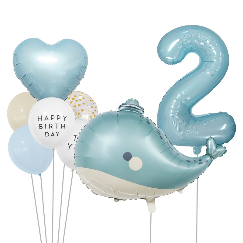 海洋テーマ風船セット誕生日パーティー装飾品32インチデジタルバルーン束イルカアルミ膜風船セット