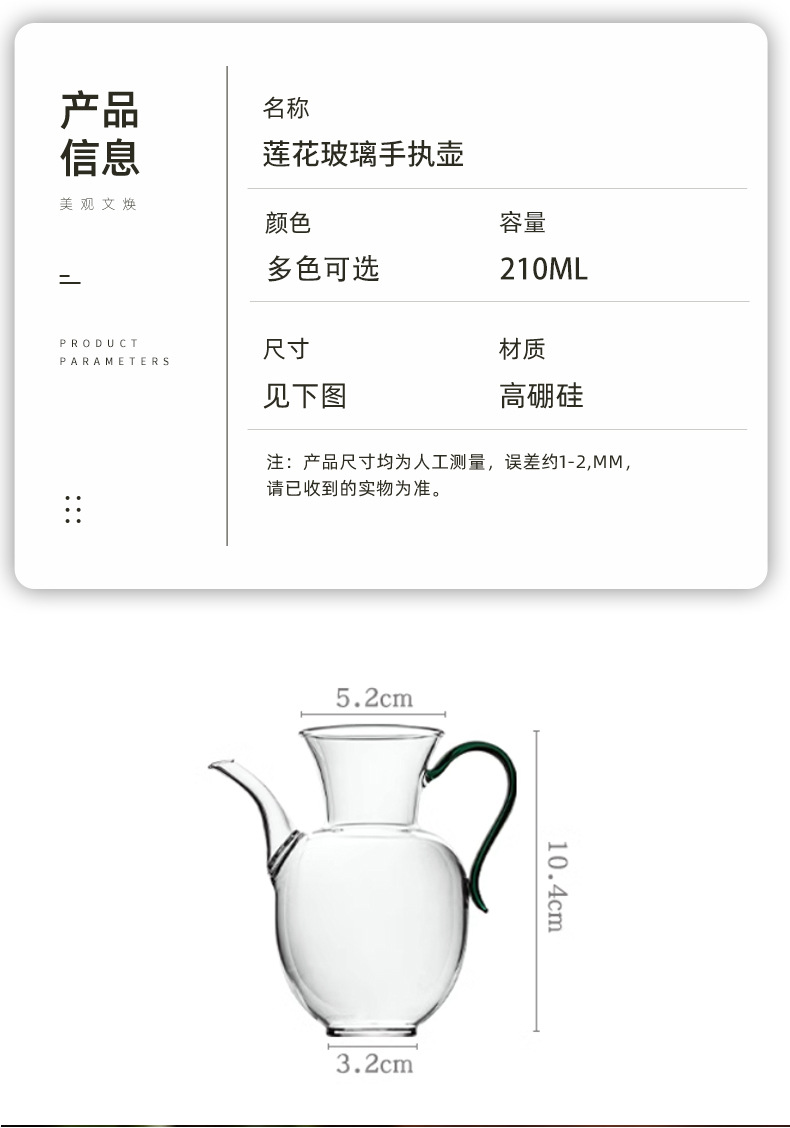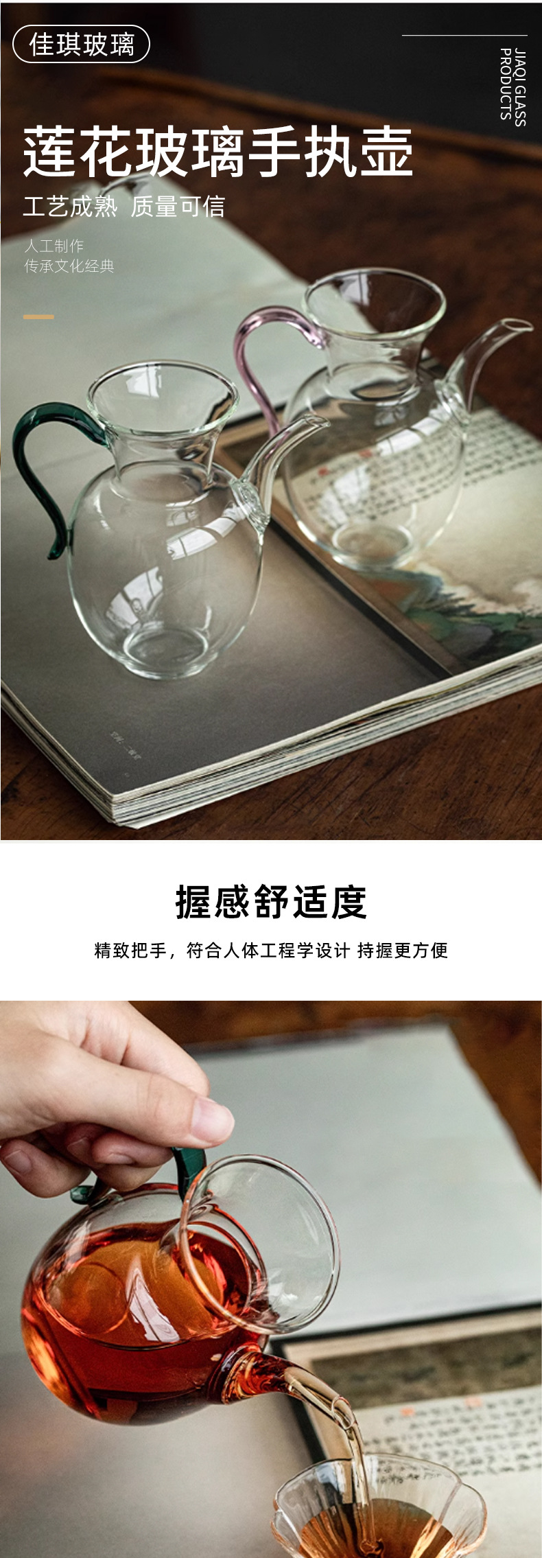新中国式蓮花手執壺高ホウ素シリコンガラス緑急須茶室取っ手付き茶泡茶器分急須