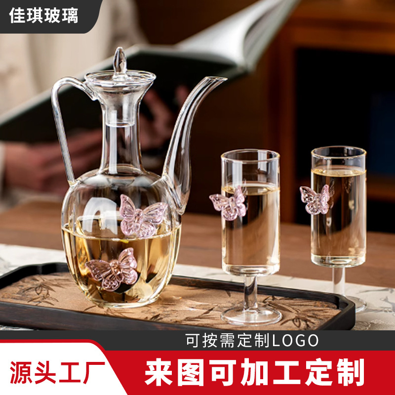 法式复古浮雕蝴蝶玻璃杯高硼硅玻璃壶煮茶壶家用泡茶高脚杯套组