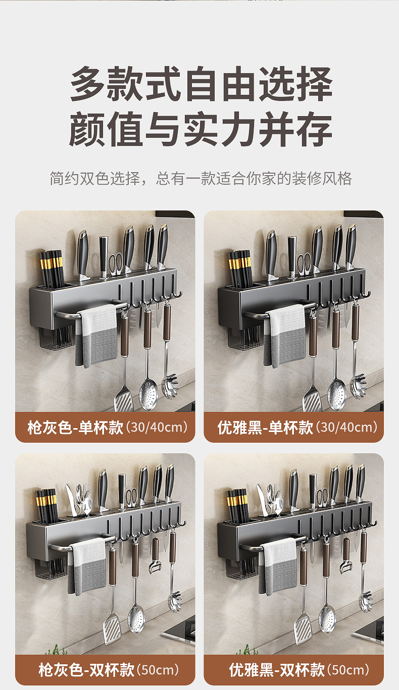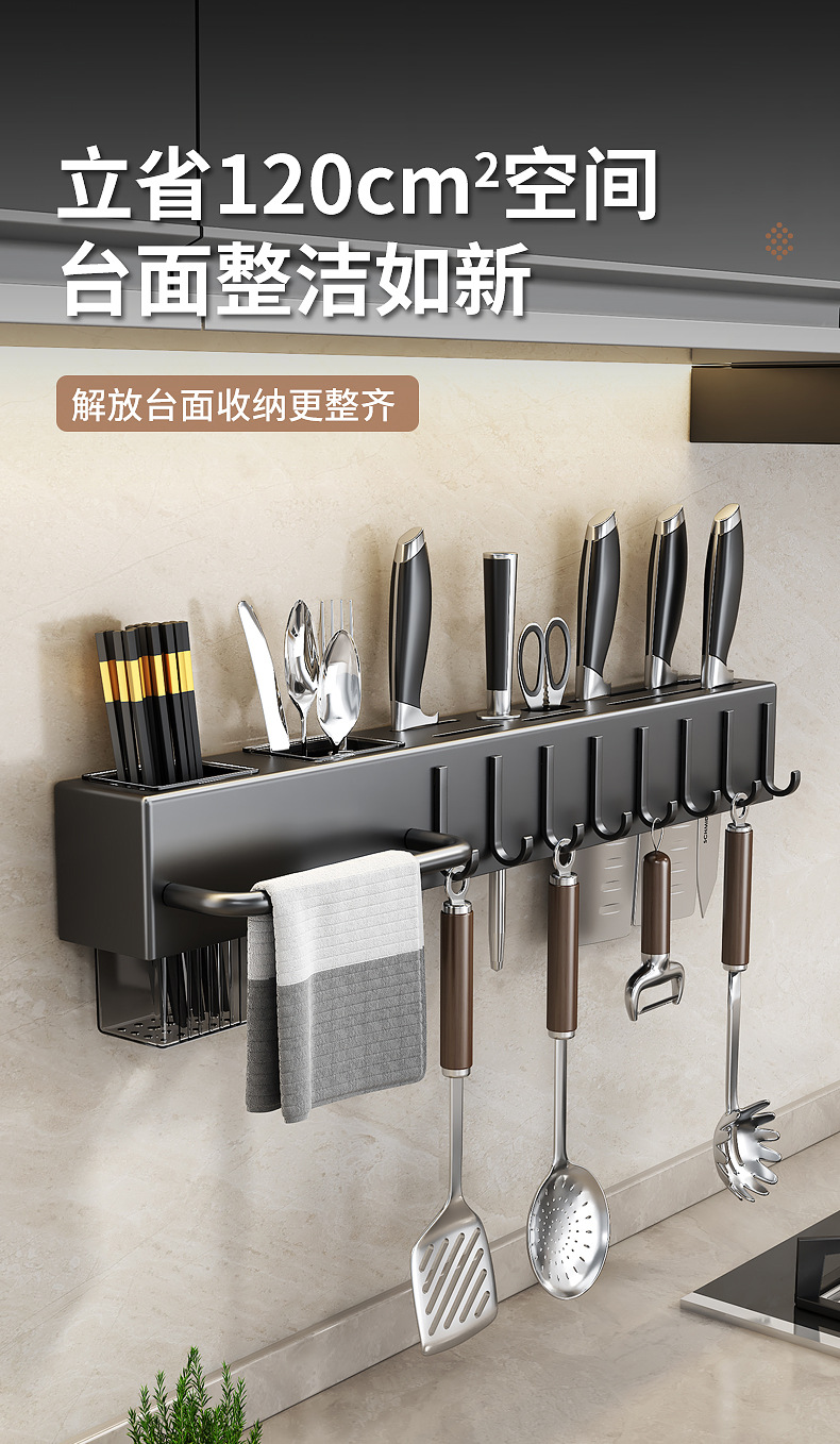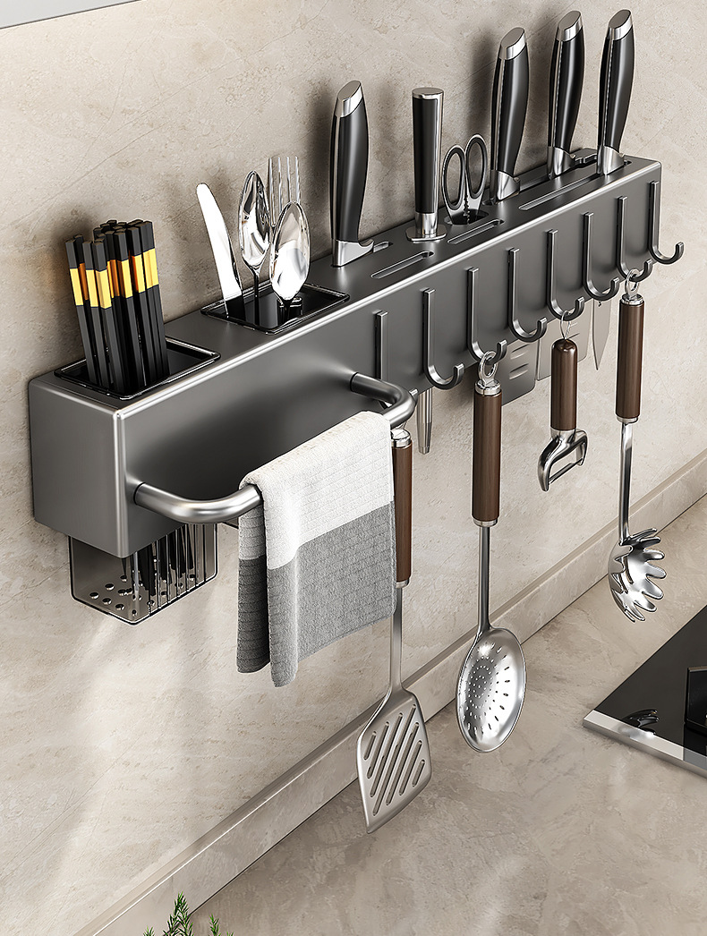 多機能キッチン用品壁掛けナイフホルダー収納ラックパンチフリー箸ケージ一体型収納ラック箸バレル
