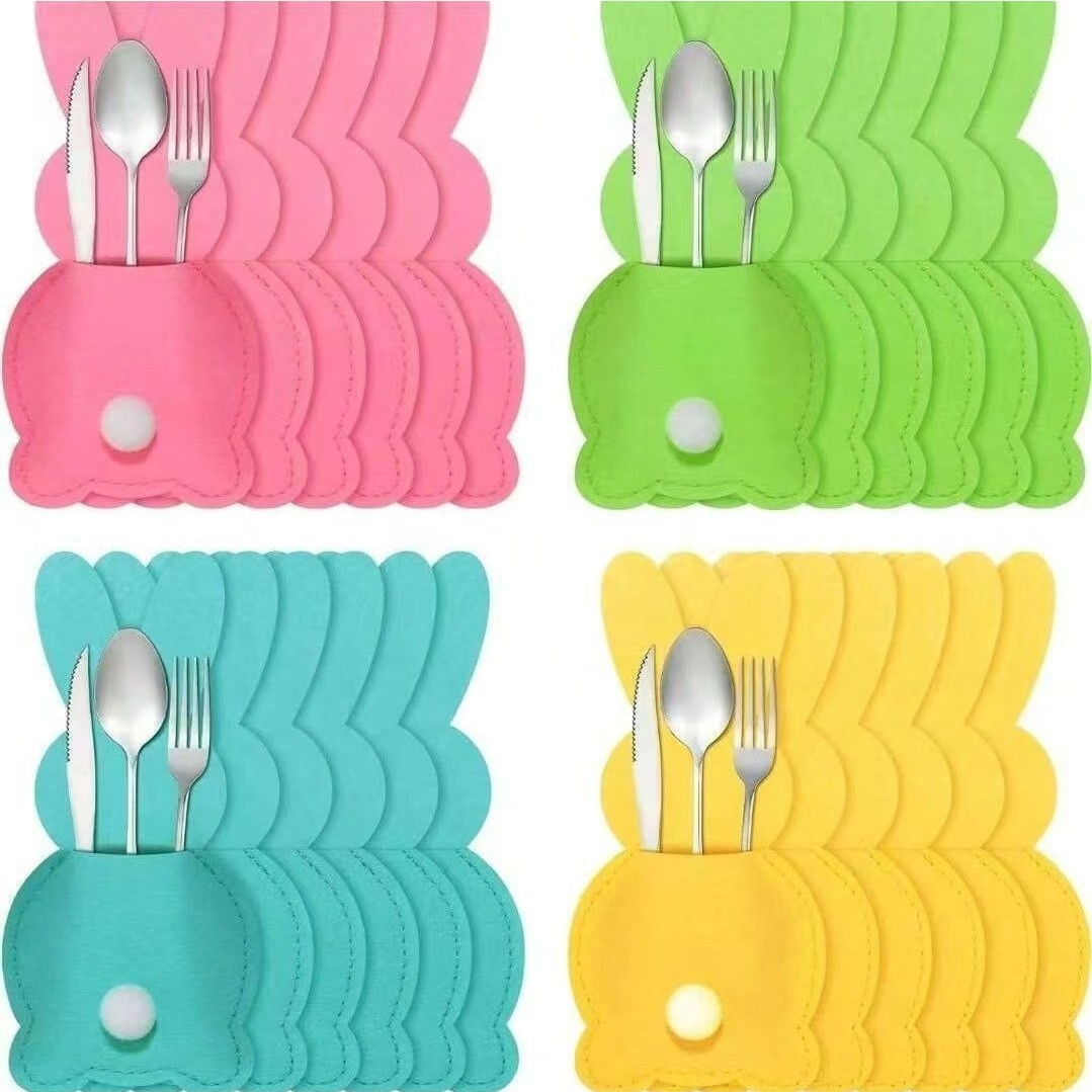 クロスボーダー イースターバニー食器セット フェルト製フォークスプーンバッグ ホリデーテーブルデコレーション 即納可能 ギフトとして配送可能