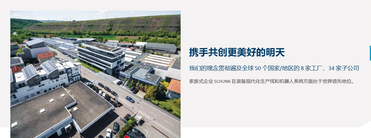 SCHUNK 是刀具和工件夹持、抓取技术和自动化技术领域的国际技术领导者。拥有 8 家工厂和 34 家直属分公司,大约 3500 名员工,以及遍布全球超过 50 个国家和地区的分销合作伙伴,保证了密集的市场。