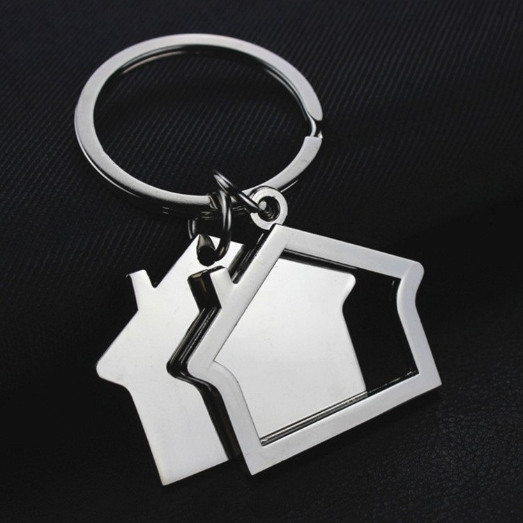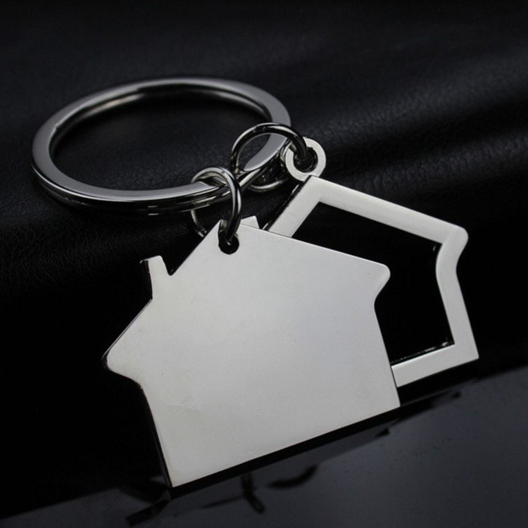 ステンレス製の家の形をしたキーホルダー、金属製のキーチェーン、不動産販売促進用の小さなギフト、刻印入りペンダント、子供の日のギフト