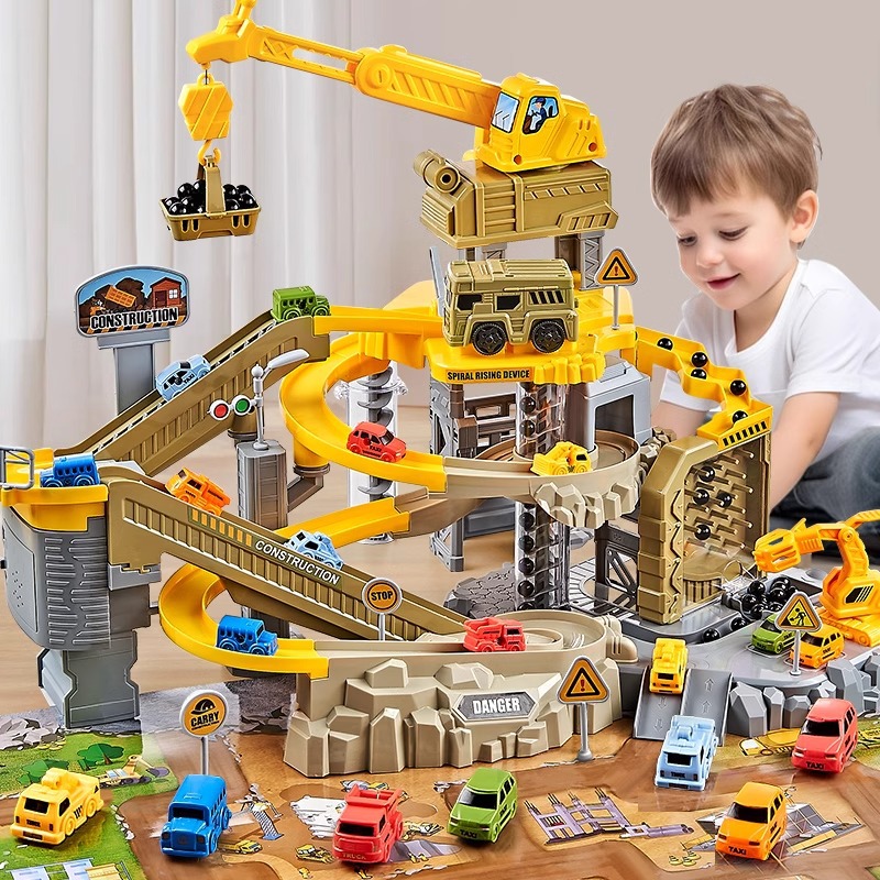 工事の軌道車は小さい列車の駐車場の車を滑って関所の大冒険の3歳4おもちゃの男の子の益智の子供を突破します。