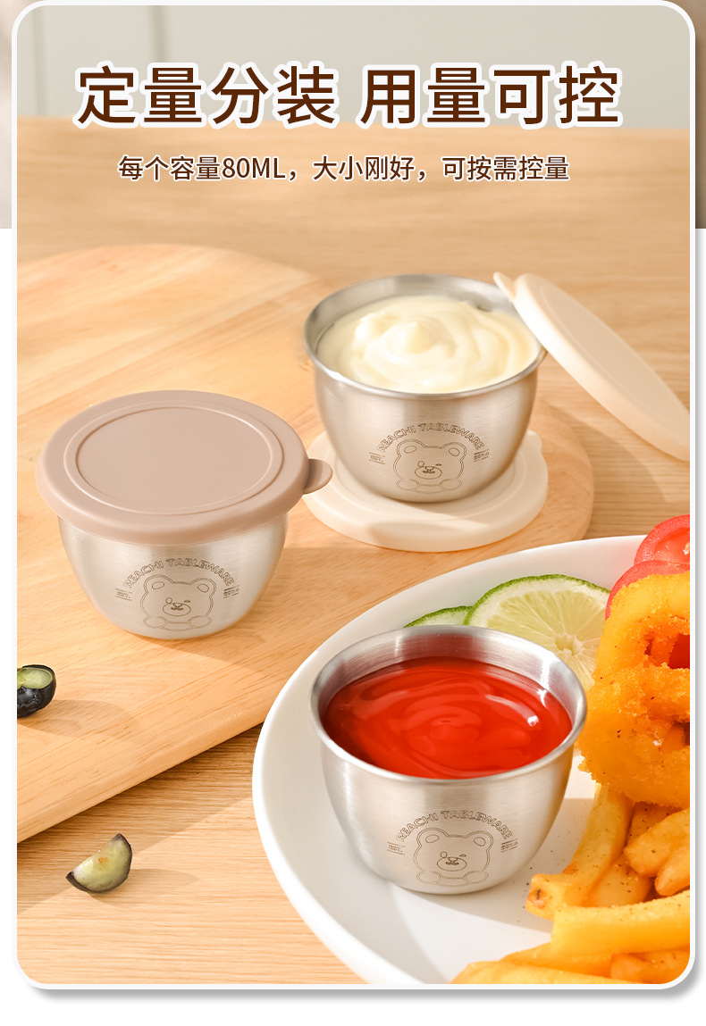 304ステンレス携帯ソースカップケチャップ皿蓋付きサラダ調味皿ミニかわいい調味料皿