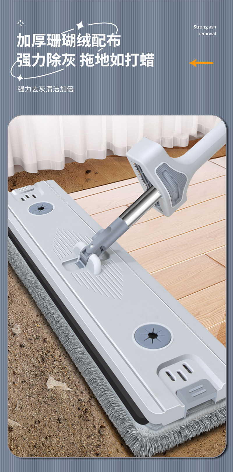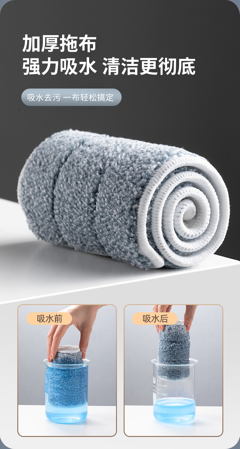 手洗い可能なフラットモップ、大型モップ、家庭用吸収性レイジーモップ、コーラルベルベットクロス、詰め替え可能なモップスクレーパー