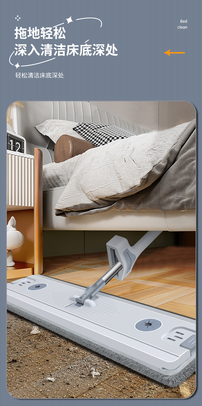 手洗い不要の楽々家事モップ、乾湿両用、消毒液追加可能、大粒厚手シェニールフラットモップ