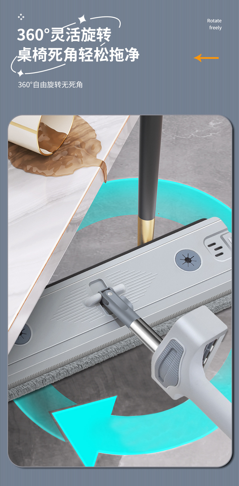 液体を追加して消毒できるレイジーモップ、手洗い不要、乾湿両用、回転式シェニール大型モップ、フラットパネル、分解不要