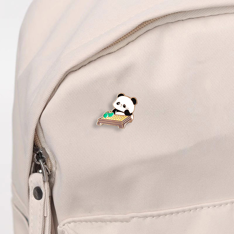 かわいいパンダの金属バッジpinはマージャンを打って鍋のパンダの服を食べてブローチの学生のかばんの装飾を飾ります。
