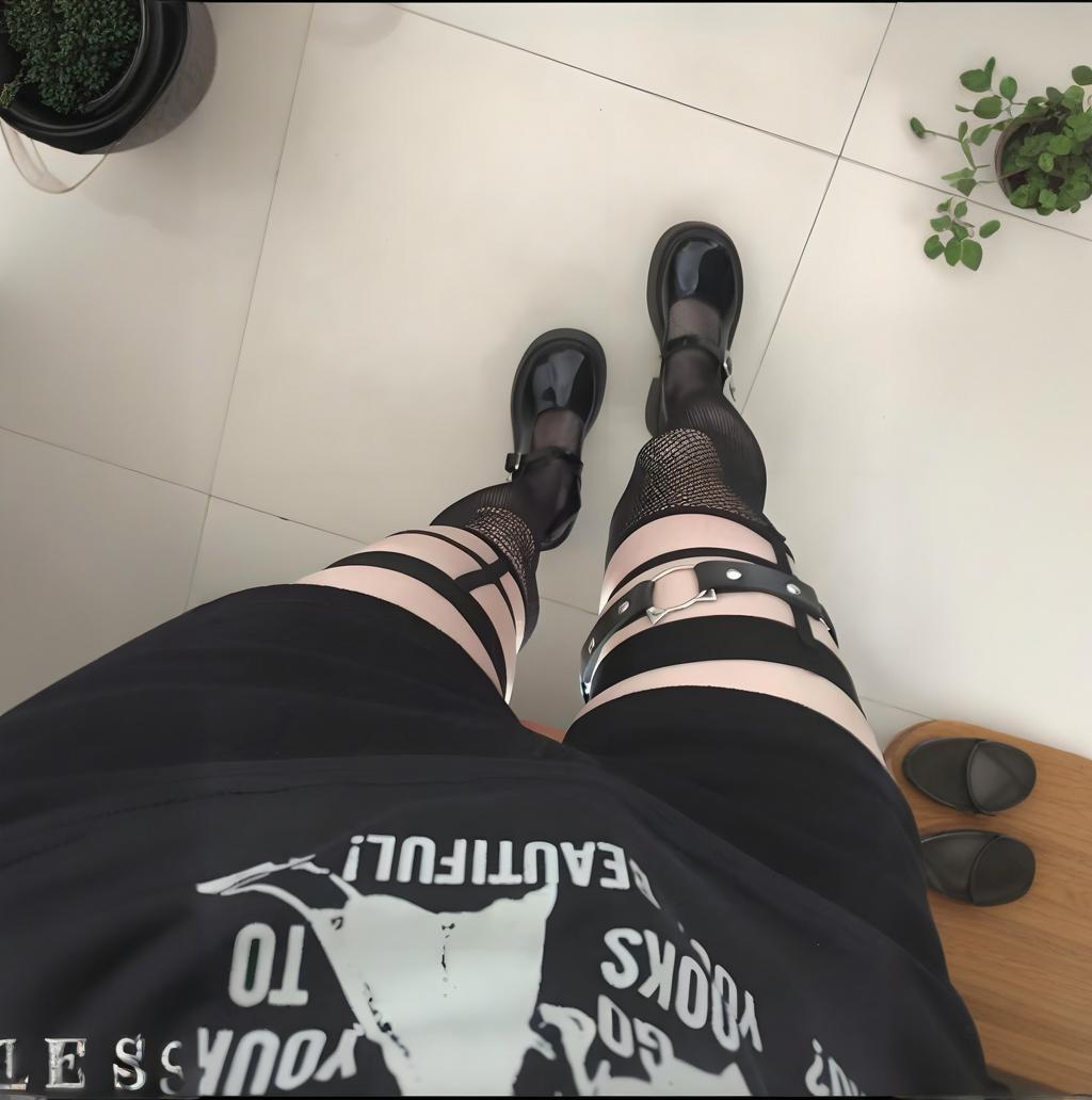 ホットガールセクシーで多用途なPUワイド太ももガーターベルトレッグチェーンインターネットセレブトレンディな女性のレザーマルチレッグリングガーターベルト
