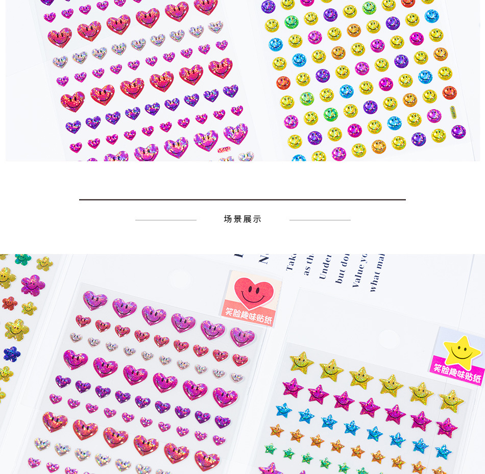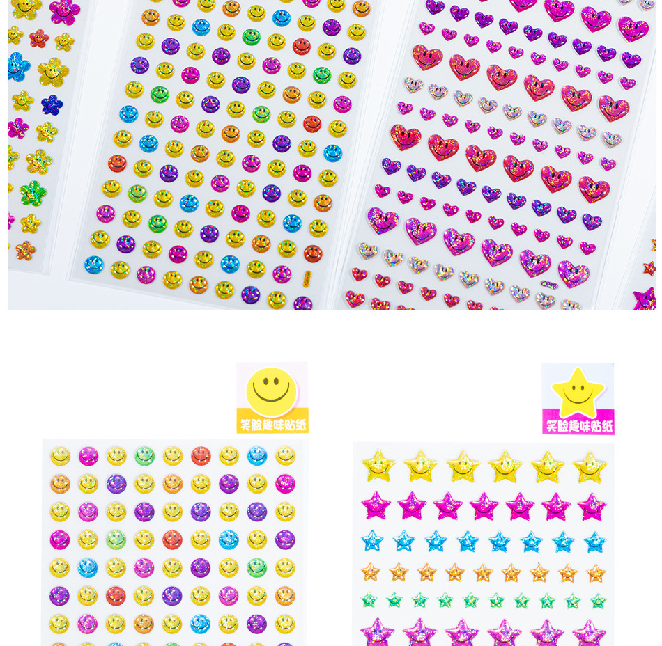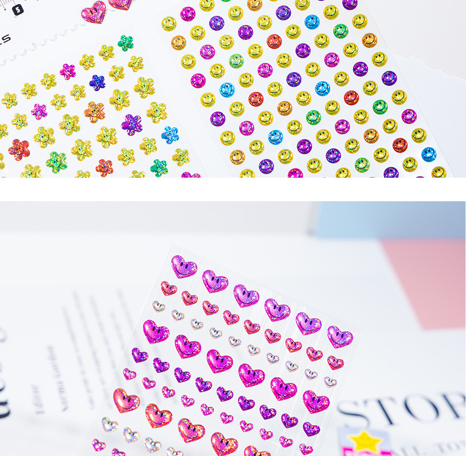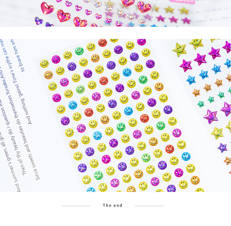 カラフルな小さな笑顔の立体クリスタルステッカー星花愛ハッピー表現子供の手作り教育ご褒美ステッカー